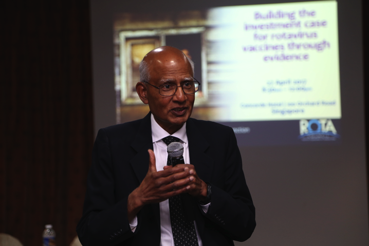 Dr. Mathu Santosham speaking at the Asian Vaccine Conference.arsenal. We’ve shouted about it from toilet stalls and proudly worn the moniker Dr. Diarrhea on behalf of the cause, because we know the stakes all too well.