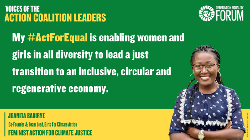– Joanita Babirye, co-founder of Girls for Climate Action and leader of the Generation Equality Action Coalition for Feminist Action on Climate Change