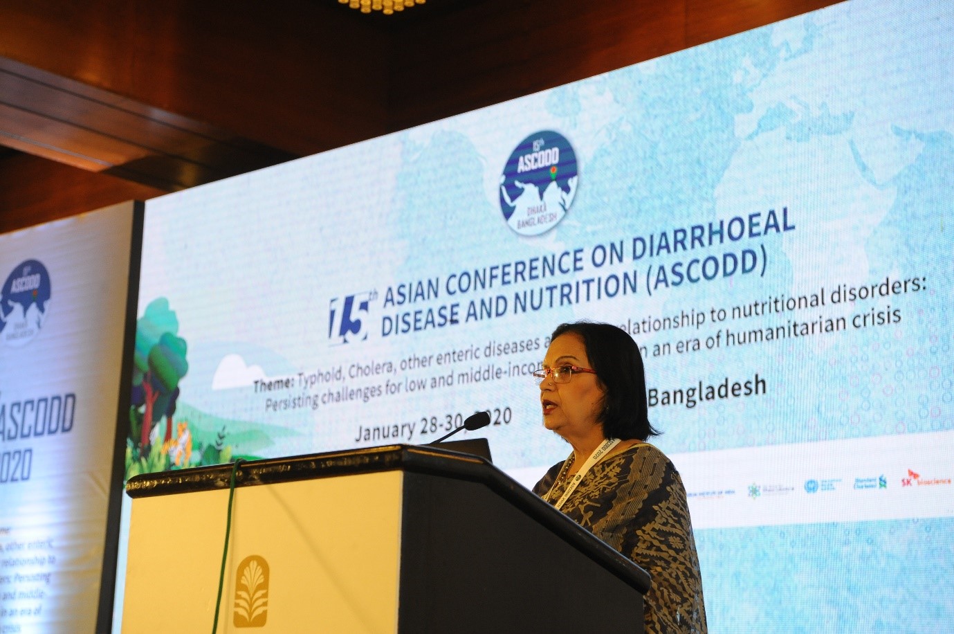 Dr. Firdausi Qadri delivering the opening remarks at the ASCODD. Photo: icddr,b“If we do not transfer all the work and knowledge we have accumulated to the countries that need it the most, then it is of no use,” notes Dr. Qadri.