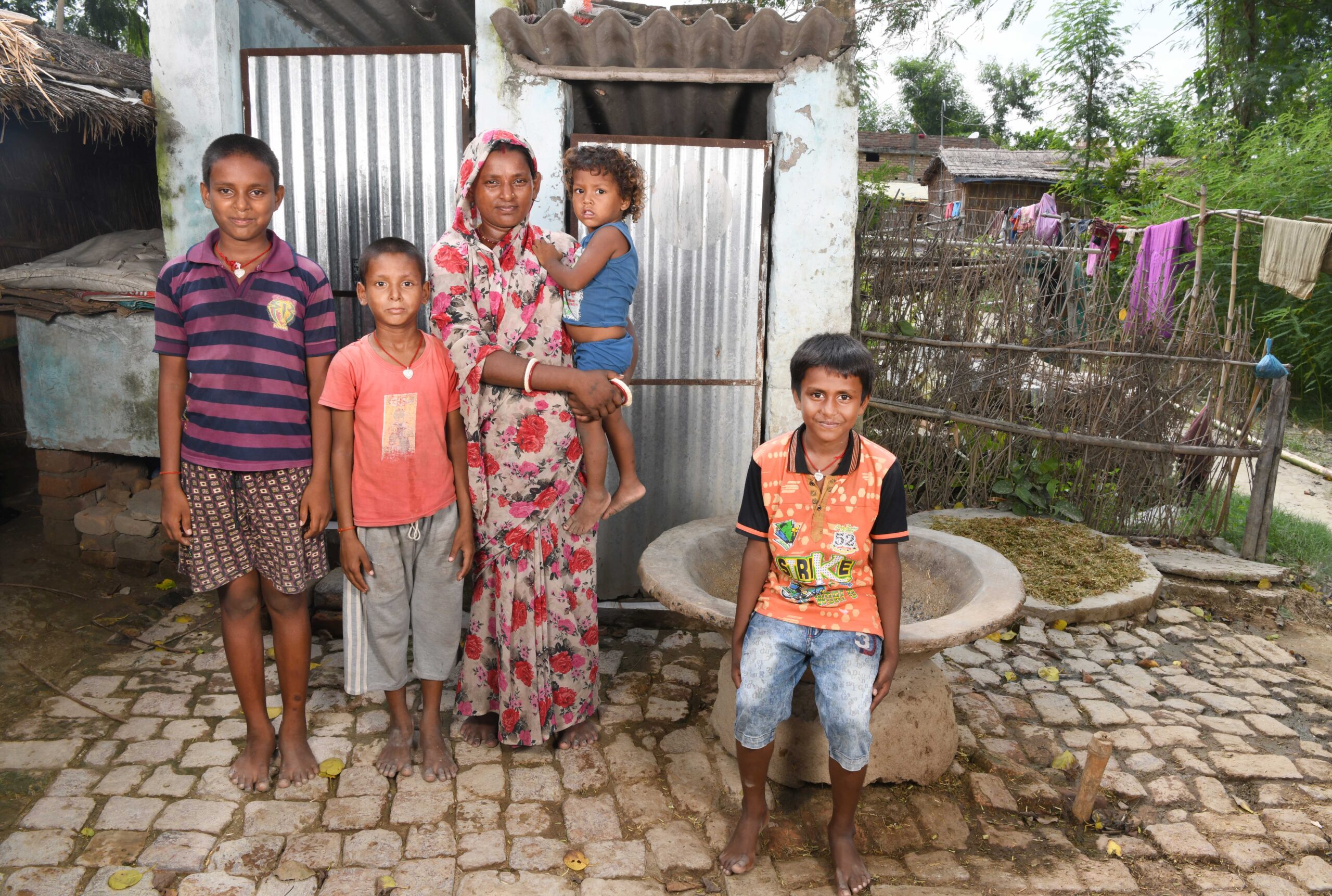A family in Bihar, India, stands proudly in front of their new toilet. Photo: Angad Khanna.