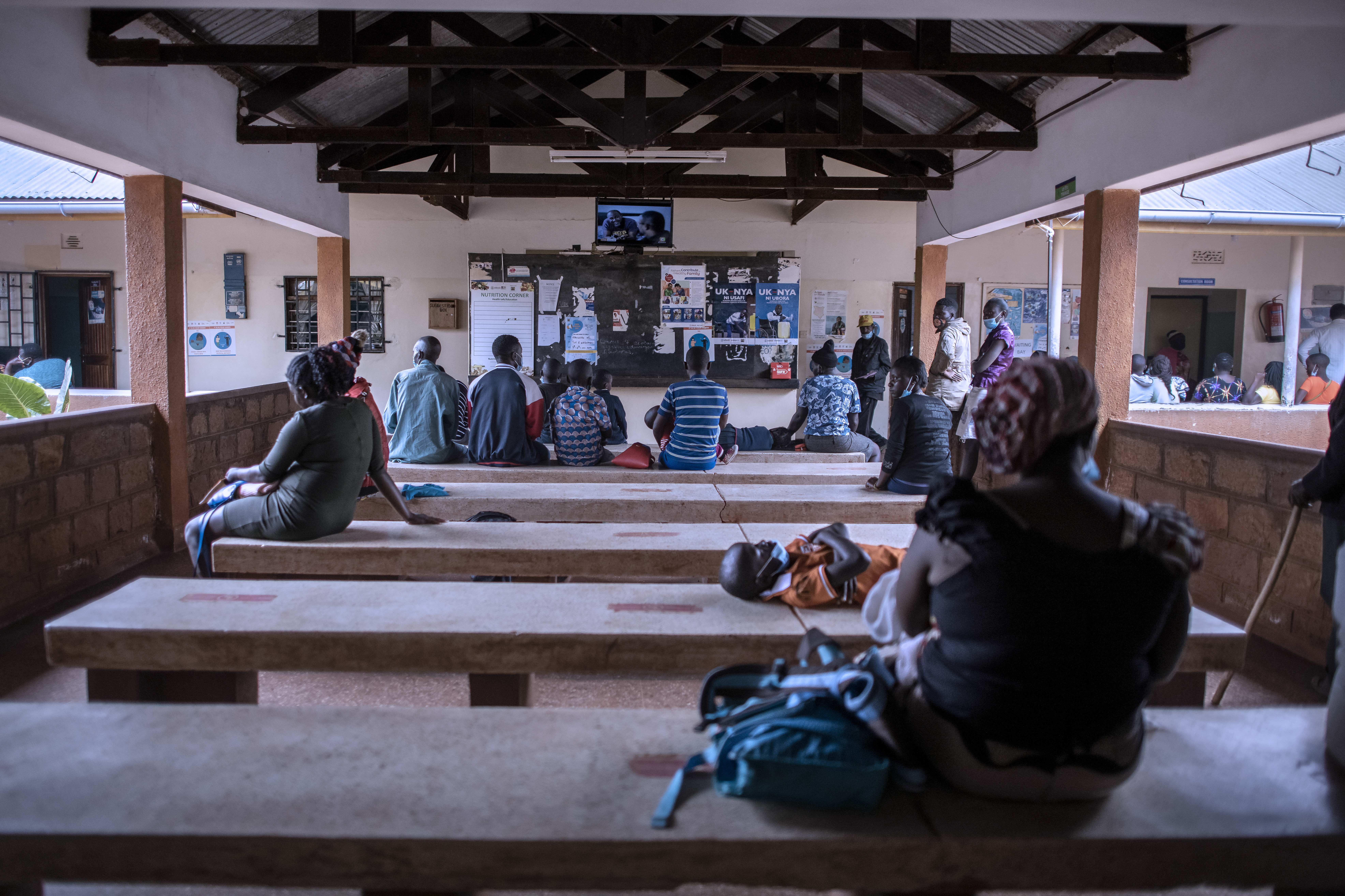 Photo: Patients and their families wait to be seen at Khwisero Health Clinic in Kwisero constituency, Kakamega County, Kenya. PATH/Anthony Karumba 2021