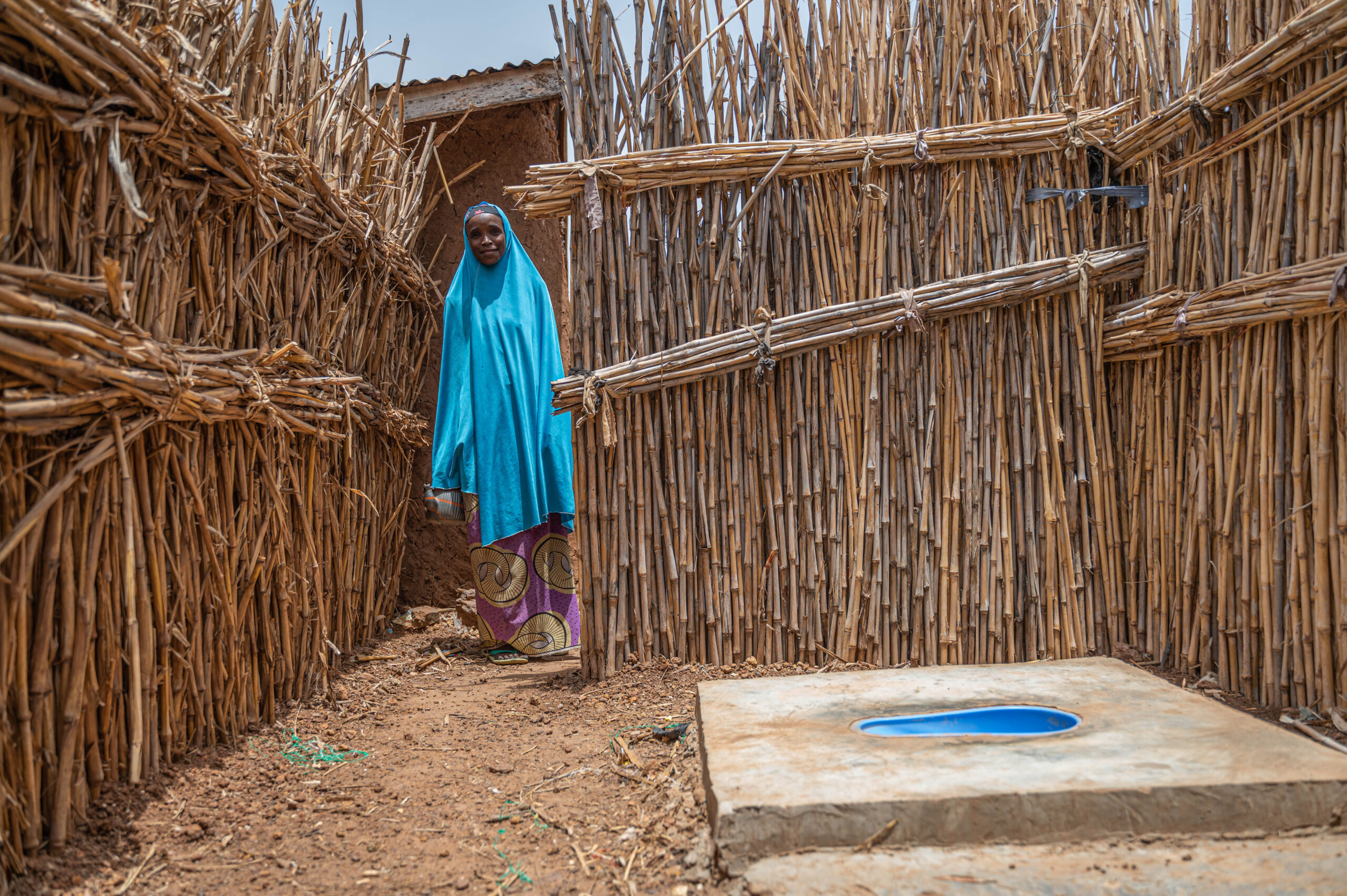 A woman standing in front of a well constructed toilet in Northwest Nigeria. Photo: UN-Water/Apochi Owoicho.