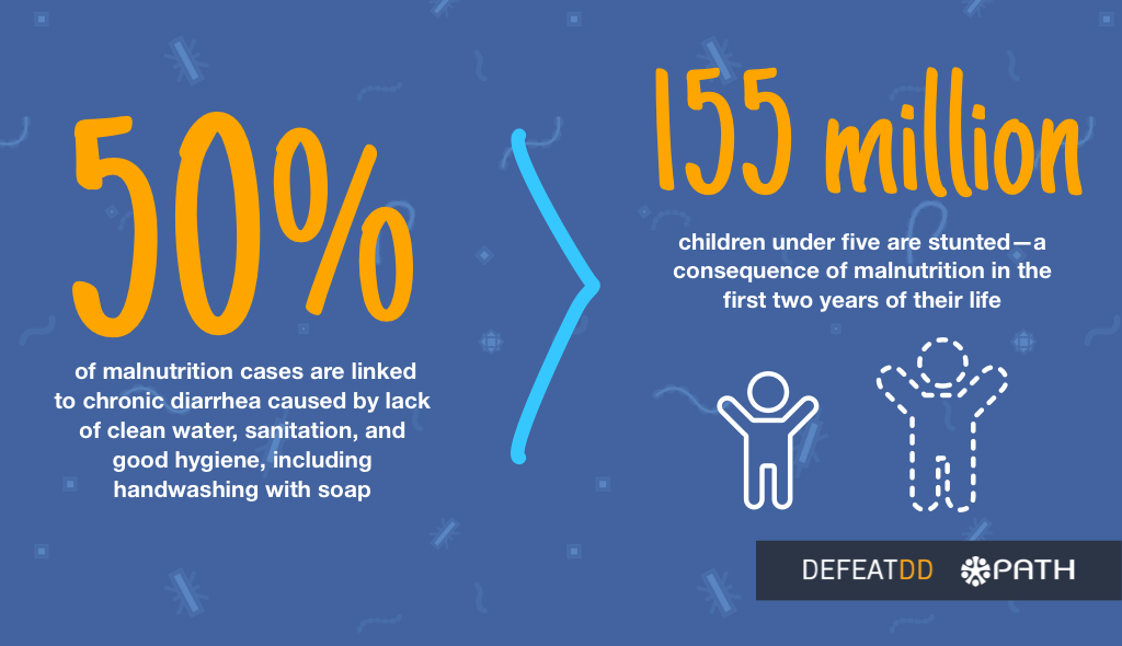 50% of malnutrition cases are linked to chronic diarrheaDownload this image for Twitter or Facebook. Optional link: http://report.defeatdd.org/breastfeeding-nutrition/