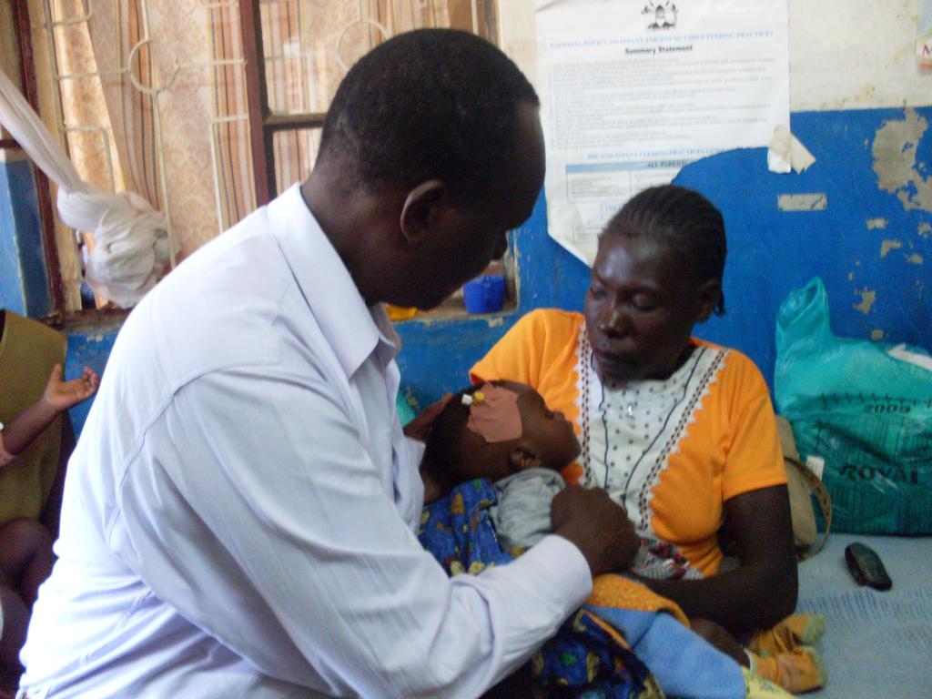In the Kimilili hospital ward in Western Province, Kenya, Alfred Ochola, primary health care coordinator for PATH’s Enhanced Diarrheal Disease Control Initiative, examines a severely dehydrated child. It is her fifth day receiving expensive IV fluids, but if she had been treated with ORS at the first sign of dehydration, she could have gone home healthy within a matter hours.