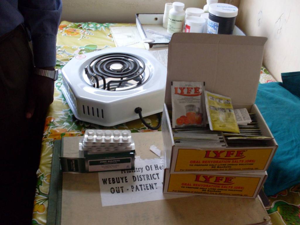 ORT corners are furnished with a simple set of supplies: a comfortable bench, plastic containers, ORS, zinc, and a hot plate for sterilizing water and cooking porridge.