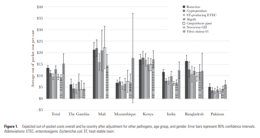 Childhood diarrhea can be caused by many different pathogens, and while there are many overlapping characteristics, infections can vary in severity, duration, clinical manifestations, and long-term consequences according to the causal pathogen. These differences can in turn impact the economic burden on patients and their families. This study, published in Open Forum Infectious Diseases, aimed to evaluate the household costs of diarrheal disease by 7 pathogens in 7 countries (Kenya, Mali, Mozambique, The Gambia, Bangladesh, India, and Pakistan) using data from the Global Enteric Multicenter Study (GEMS). The 7 pathogens compared by cost were: